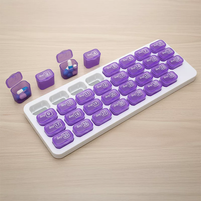 Take control of daily doses using simple numbered pods. Ortorex makes storing vitamins and medicine easy for everyone. Plan ahead for thirty-one days without confusion or stress. Each pod keeps everything visible, safe, and secure throughout the month.