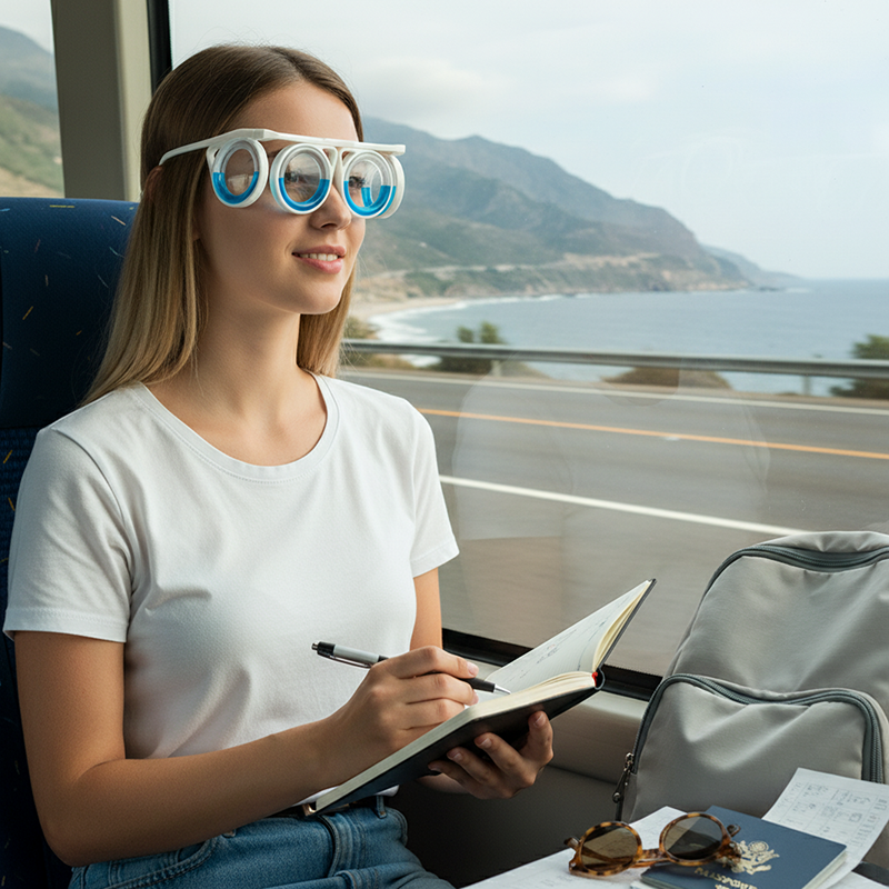 Enjoy a peaceful trip after only ten minutes. These goggles work quickly to alleviate queasiness while in motion.