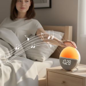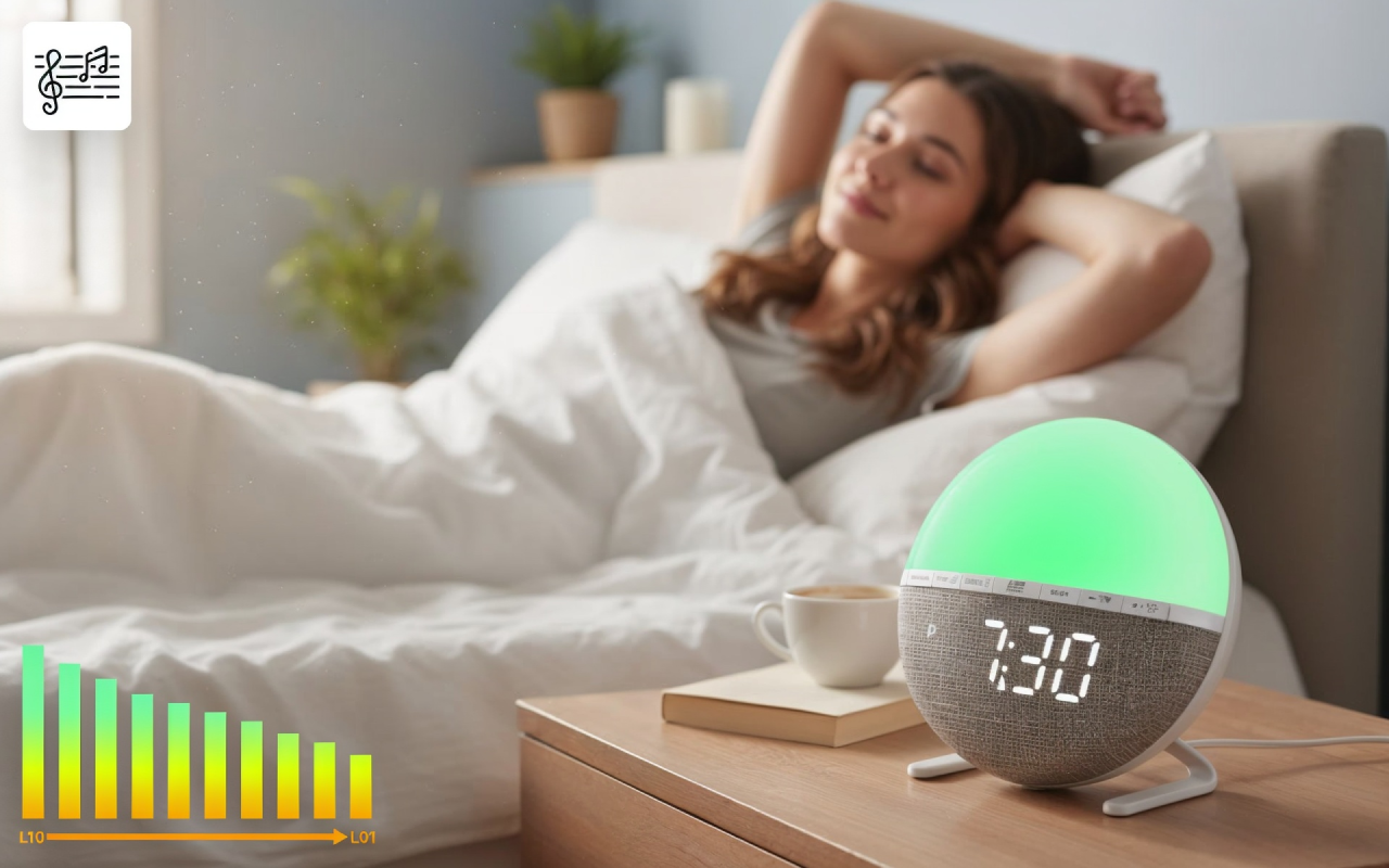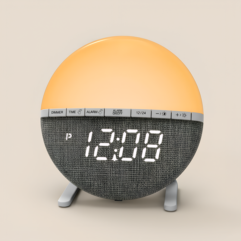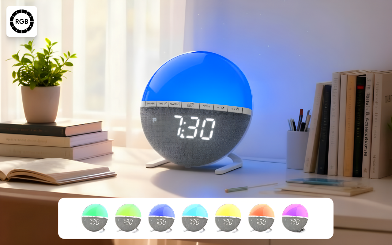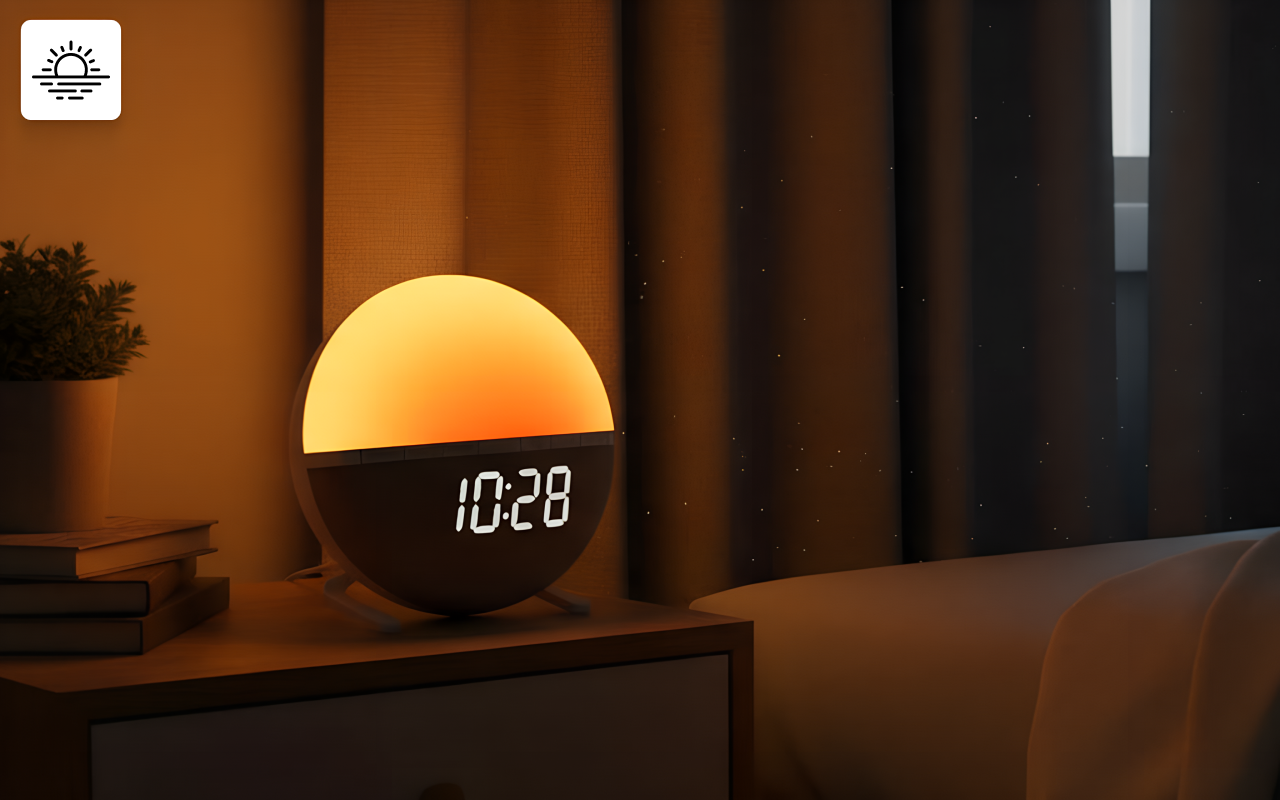 Ortorex wake-up alarm clock uses soft colours that brighten slowly. This helps your body feel calm and energised every morning.