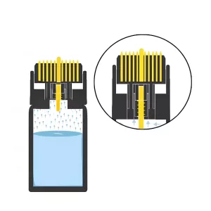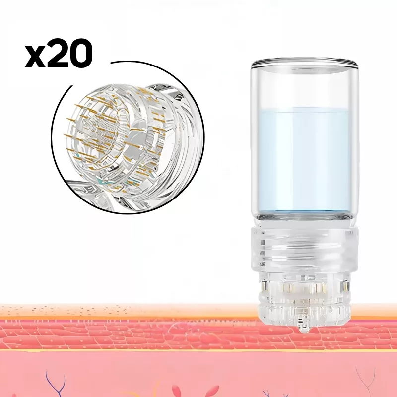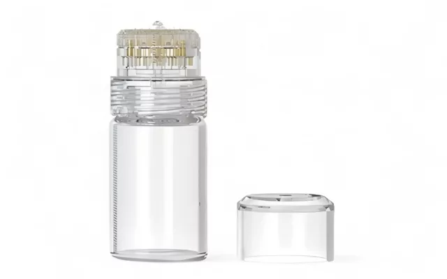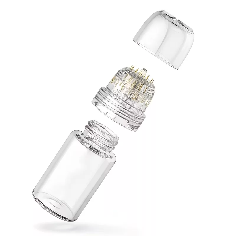 Our derma stamp features a built-in chamber for your serum. It dispenses tiny drops of the skincare product during use, making the process more efficient.