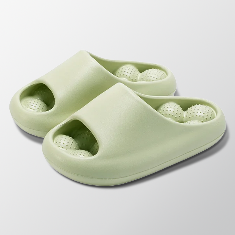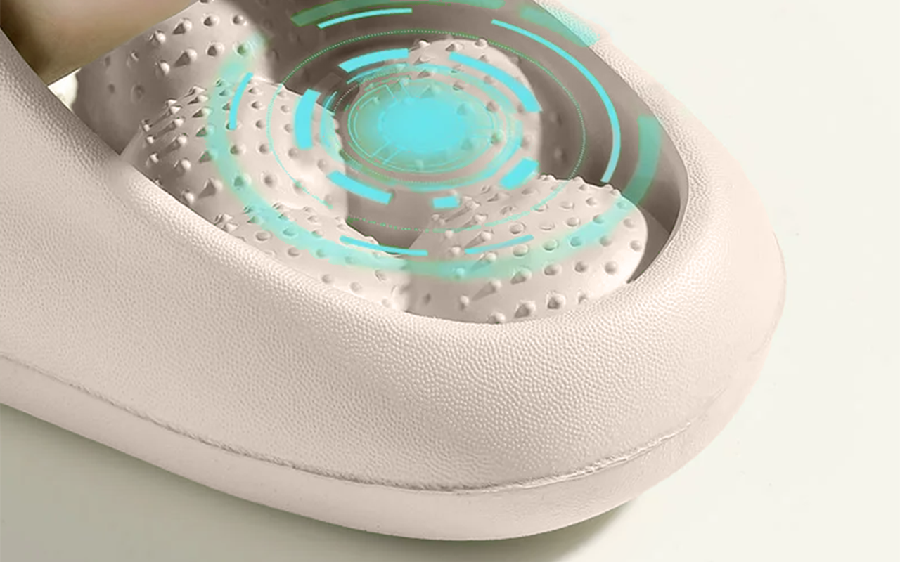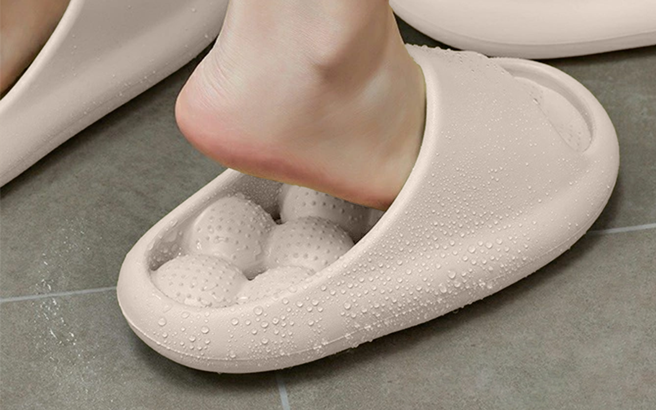 Quick to dry and easy to clean too! The grip makes me feel safe, and the sole massages are a big bonus.