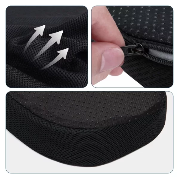 Air flows through the mesh cover, and the gel layer stays cool. No more sweating or feeling hot while you sit for hours.