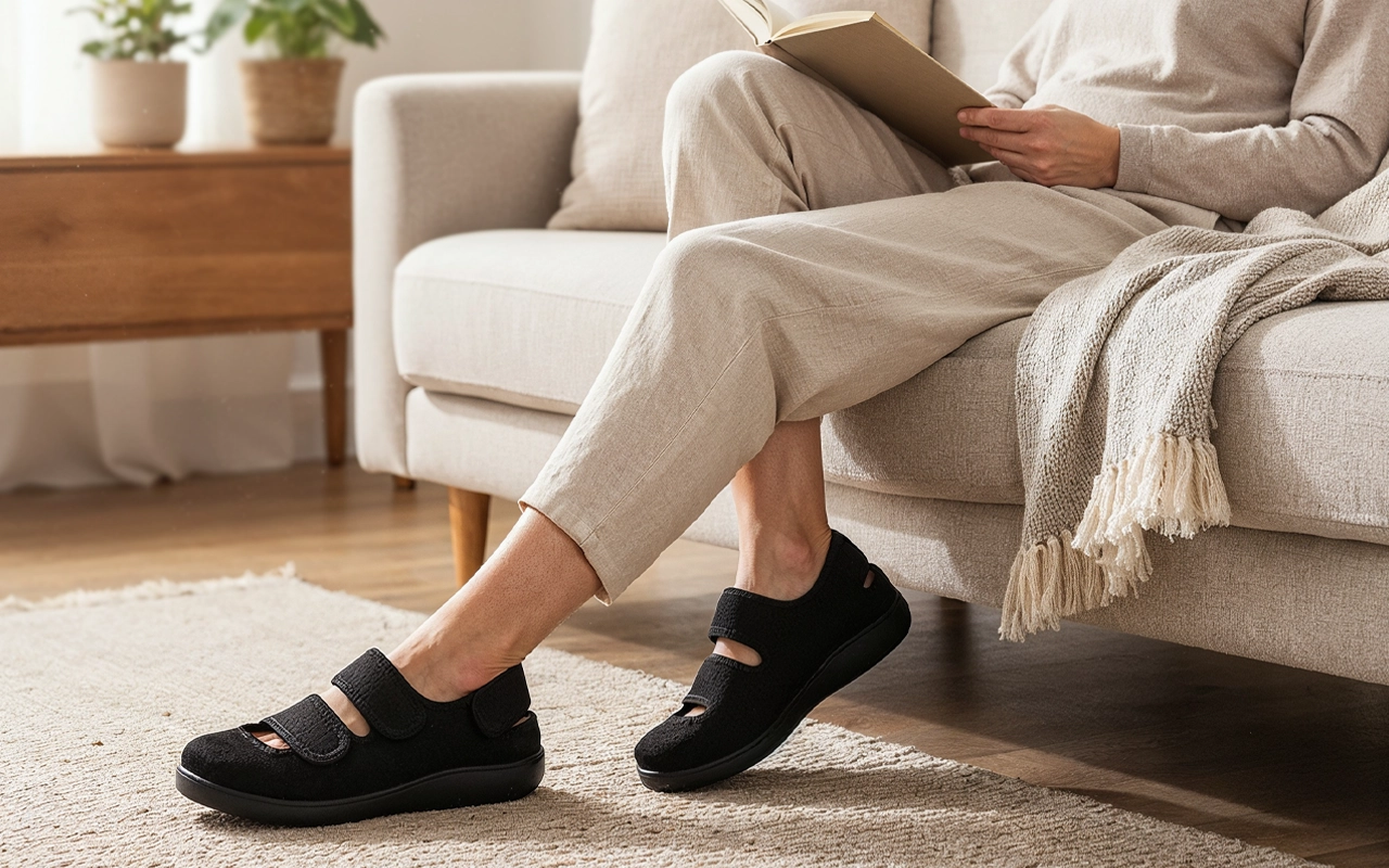 Orthopaedic Wide Fit Slip-On Shoes with Velcro Straps