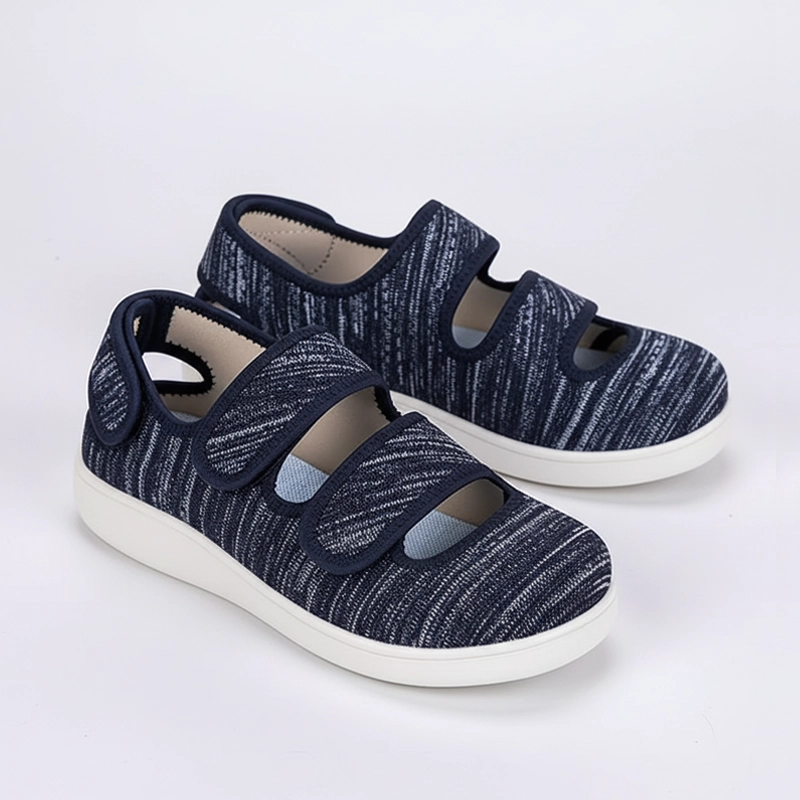 Adjustable straps hold the shoe firmly in place without squeezing. This allows personalised comfort throughout the day, even as feet swell or change shape.