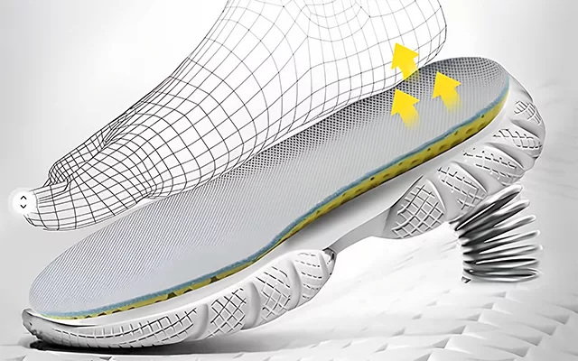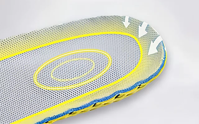 The material has a unique structure that allows air to flow freely. This helps reduce sweating and foot odour.