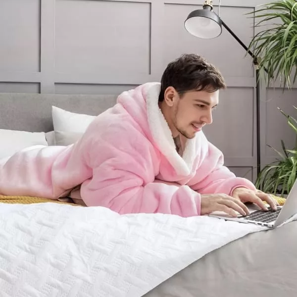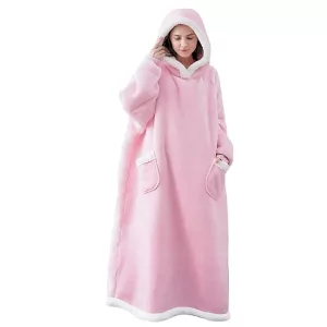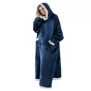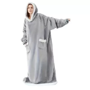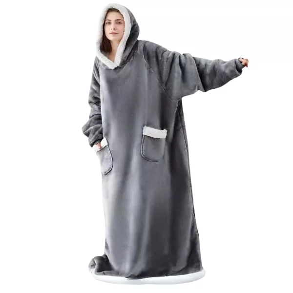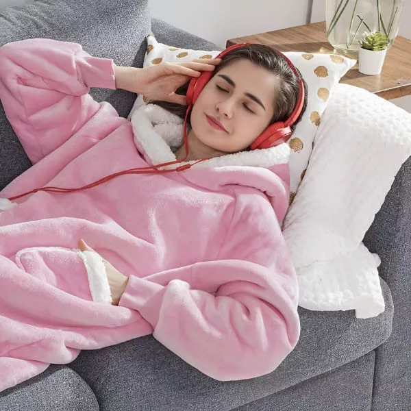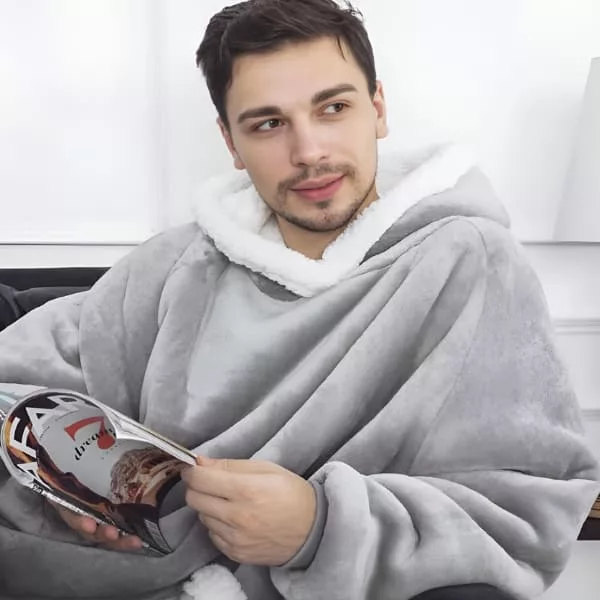 Stay warm indoors in any weather with the Ortorex hooded wearable blanket. It has an oversized design and a big hoodie to protect you from the cold. It's a perfect addition to relaxing time at home!