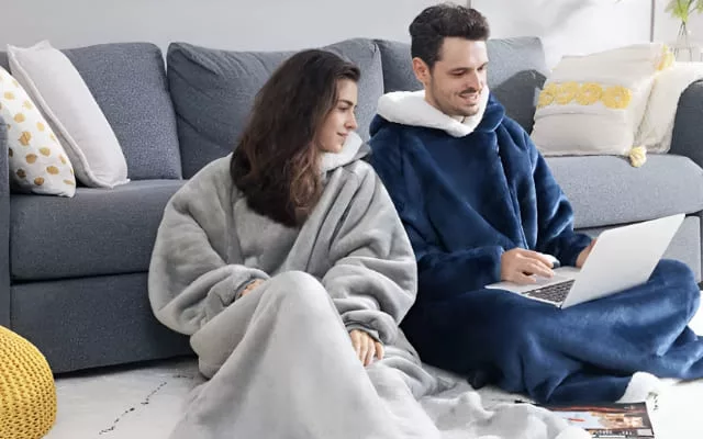 Instead of turning up the thermostat, put on this fleece wearable blanket. It will trap heat closer to your body, providing superior warmth.