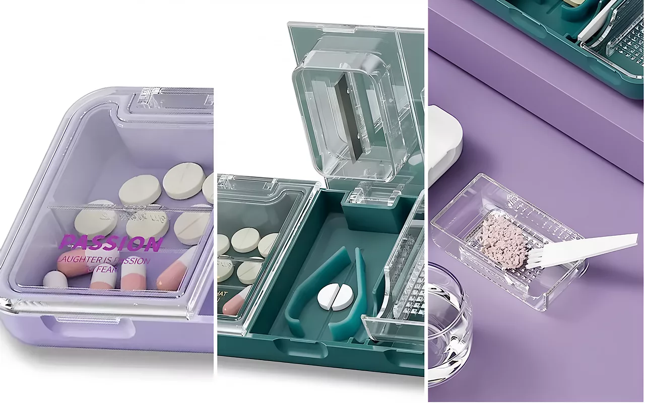 Three key features combine into one simple device. Store, divide and crush tablets without any mess or fuss.
