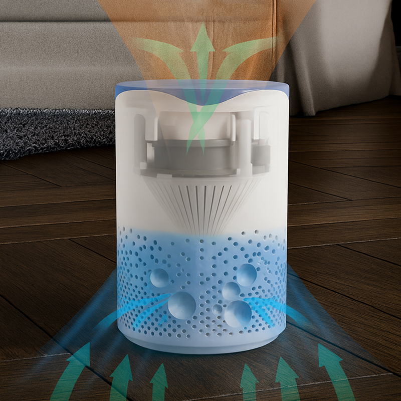 Particles from dust and pollen vanish swiftly from the air. Breathing becomes easier, supporting restful nights and healthy days.
