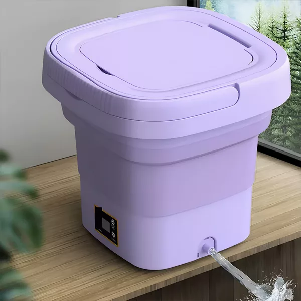 This washing machine folds down easily, saving you space and allowing for transportation. Thanks to the built-in handle, you can comfortably carry it around.