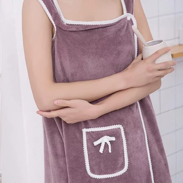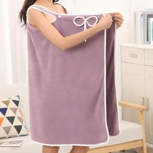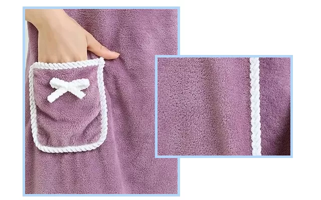 This bath towel is designed with snap buttons for your convenience. It is easy to put on and remove, and doesn't fall off while you move.