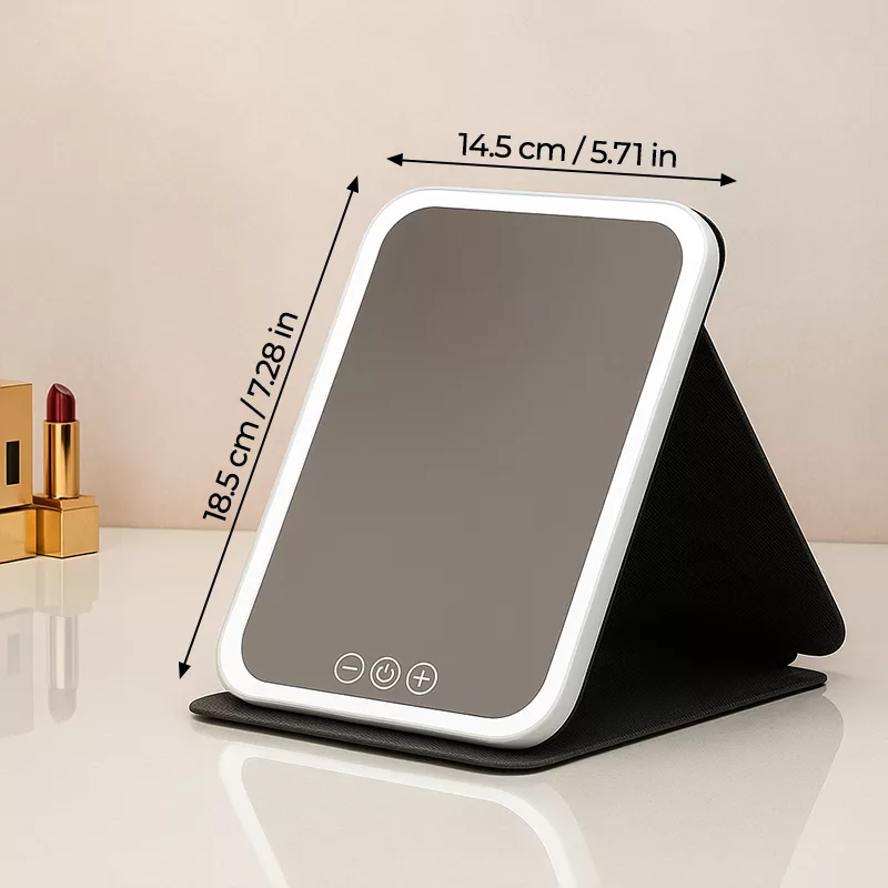 Very compact and doesn’t take up much space. Lighting is really clear and helps me get precise makeup.