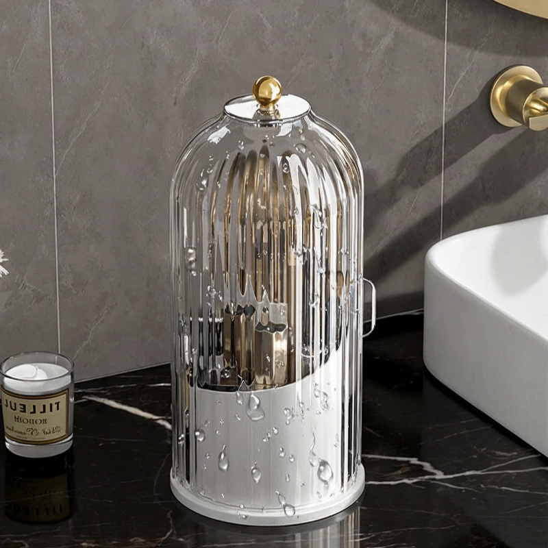No more mess on my vanity! This caddy keeps my brushes clean and organized. The clear top is perfect for keeping out dust.