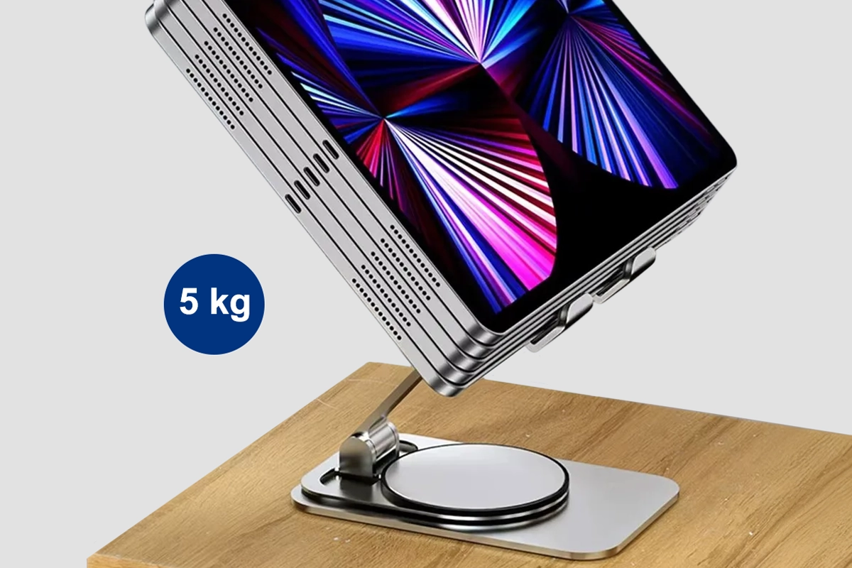 Heavy carbon steel base holds gadgets without slipping. Enjoy peace knowing your phone or tablet stays put.