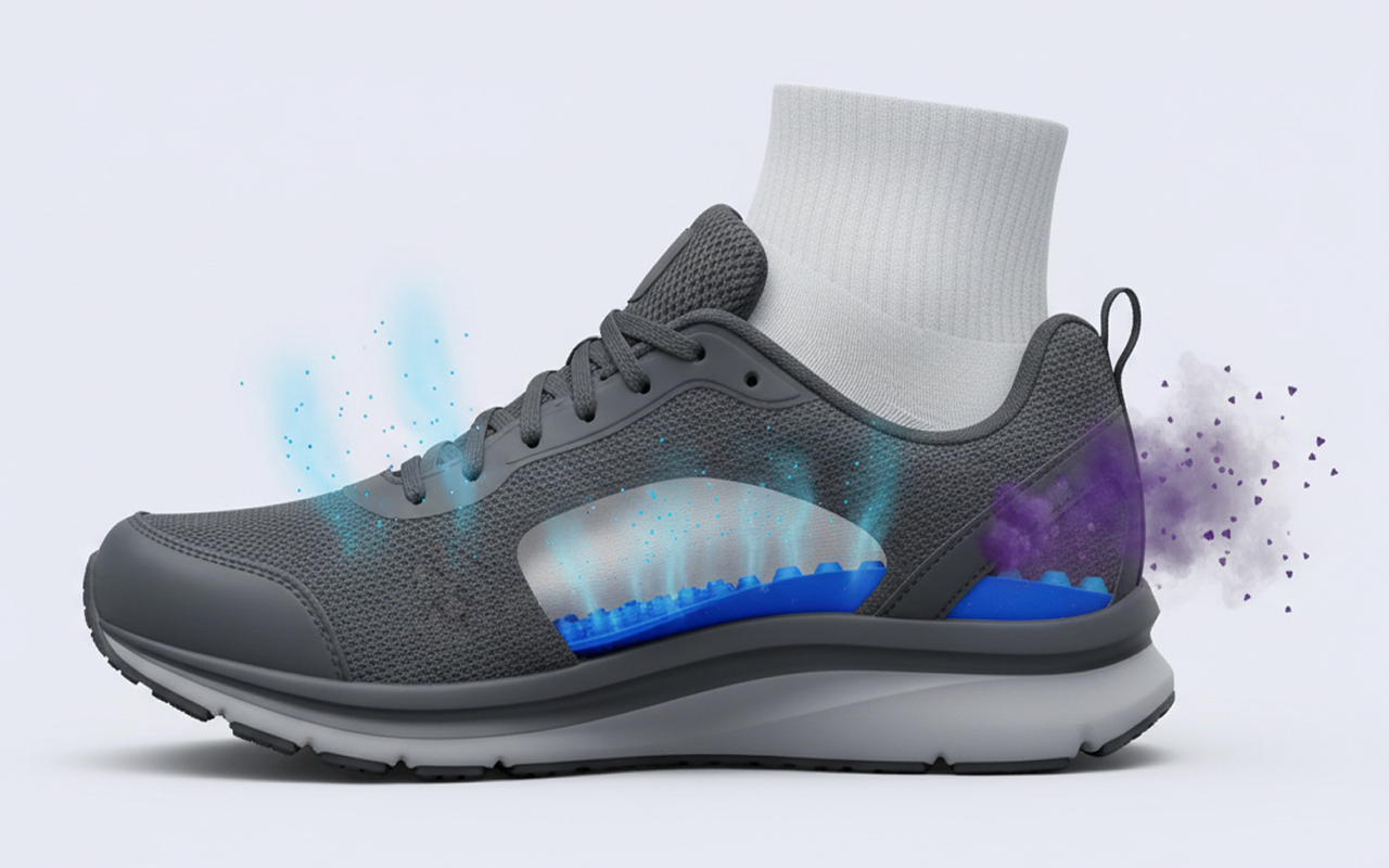 Keep shoes fresh by preventing unpleasant smells from developing inside. Breathable material lets skin stay dry and comfortable.