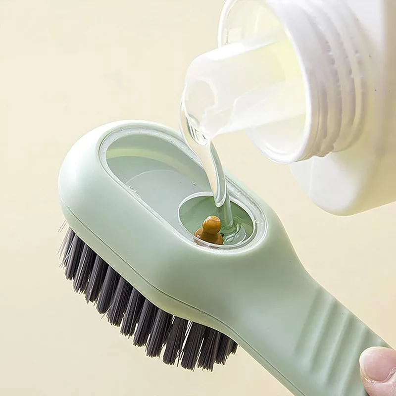 This brush makes shoe cleaning a breeze! The liquid dispenser is genius. No more messy hands.