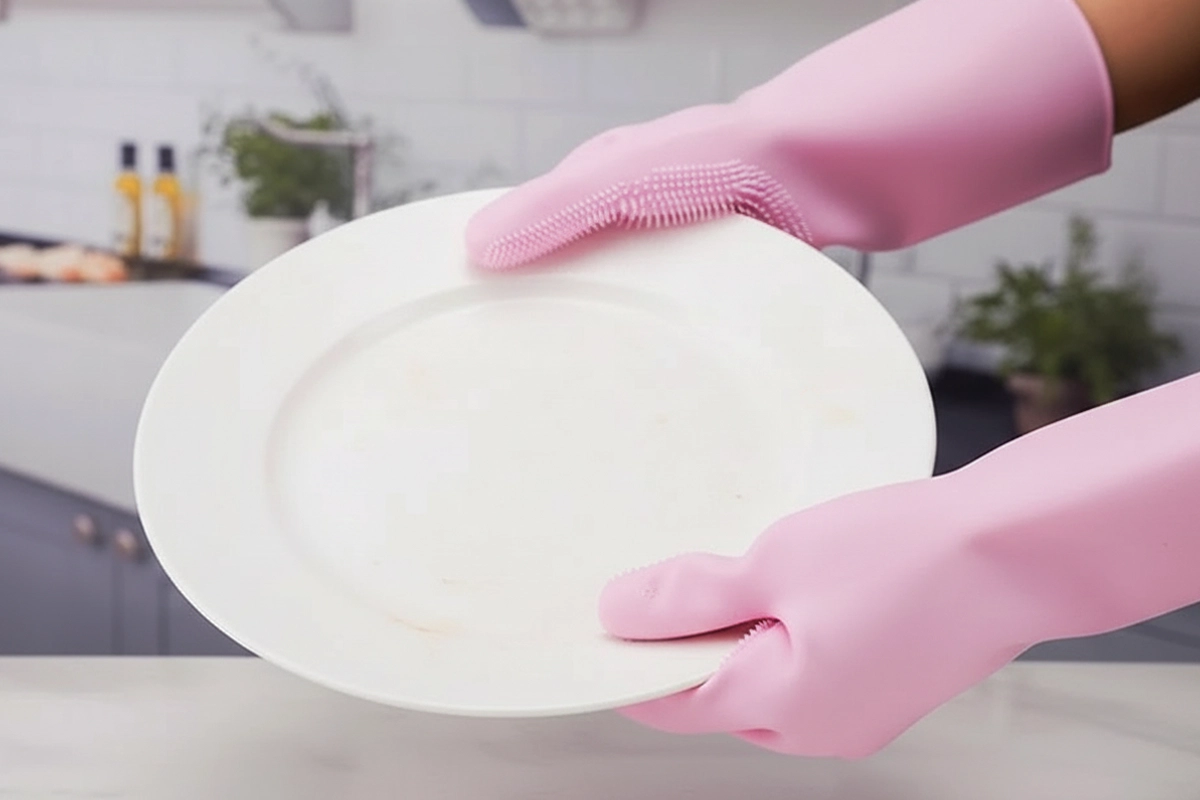 These scrubbing gloves make washing dishes so much faster! The bristles really scrub well and nothing scratches my plates.