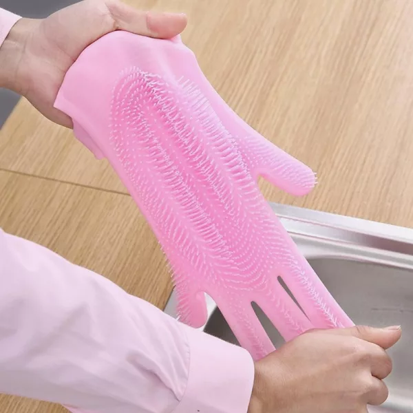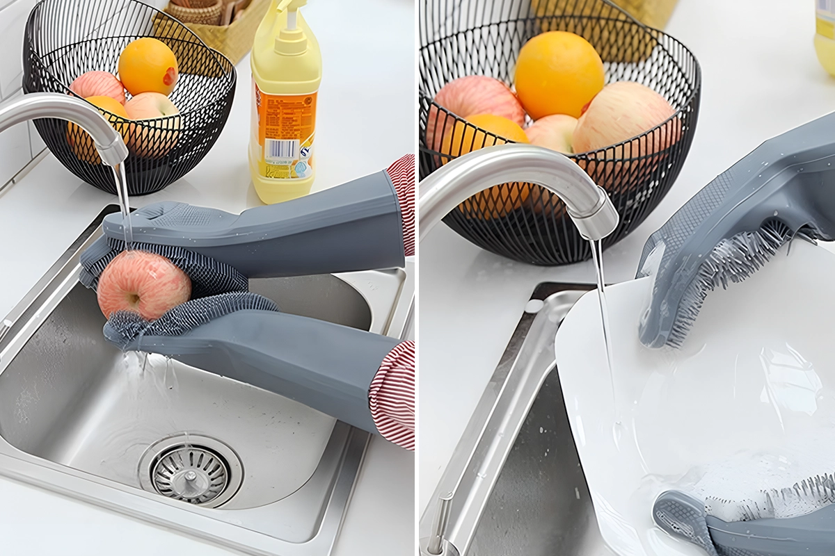 These scrubber gloves eliminate the need for separate brushes or sponges, saving you time and effort. They remove food residue, soap scum, and grime in seconds.