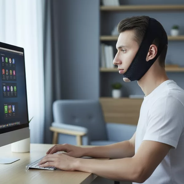 The stretchy cloth is really nice and doesn’t leave marks. I wear it during homework and my jaw looks way more defined now.