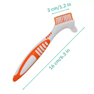 This tool fits just right in my hand and makes cleaning fast. I like the dual brush ends for getting everywhere, and it feels gentle on my dentures.