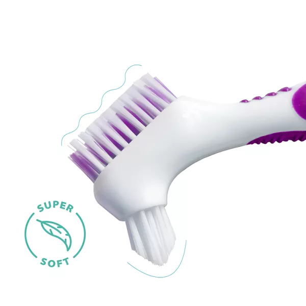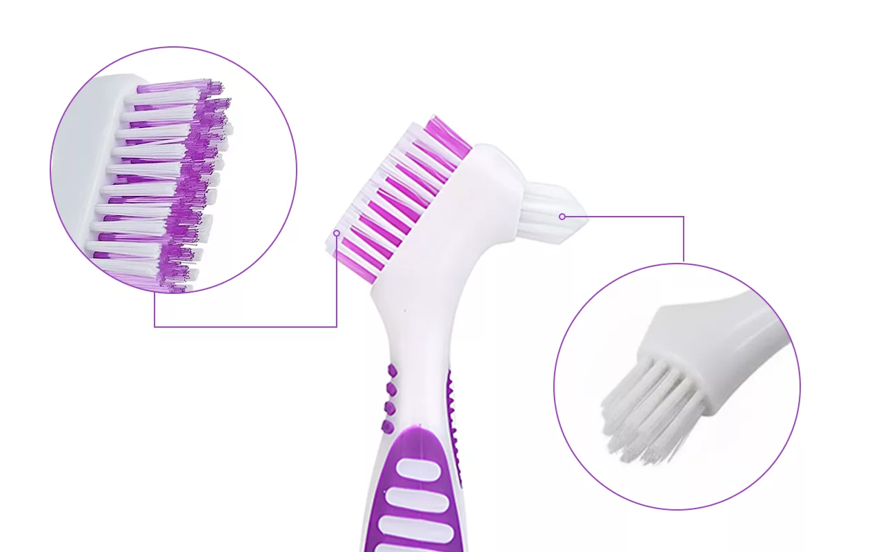 Enjoy using this denture brush each morning. The double-sided design makes sure every part gets cleaned, and I haven’t lost my grip once!