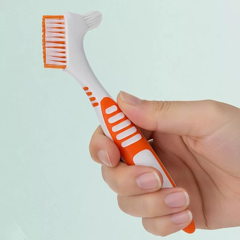 Enjoy using this denture brush each morning. The double-sided design makes sure every part gets cleaned, and I haven’t lost my grip once!