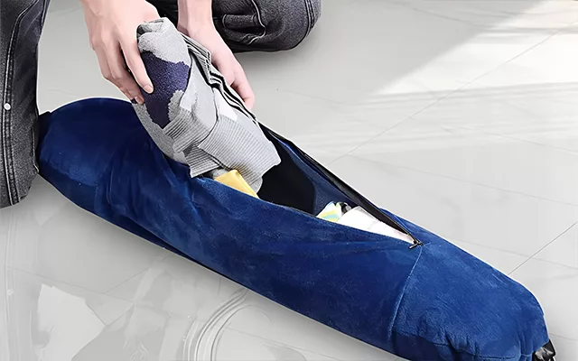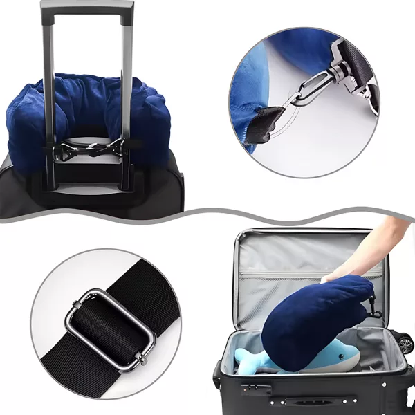 This stuffable pillow comes with an adjustable shoulder strap. You can also attach it securely to your luggage.