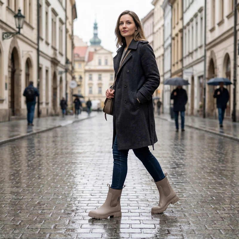 Love how these boots never slip on wet floors. I wore them around town and felt stable the entire day, even on shiny tiles and sidewalks.