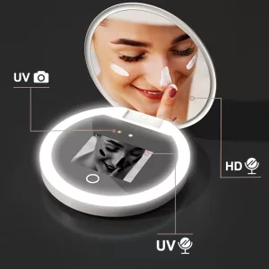 Ortorex UV Mirror is compact, light, and doubles the details. Enjoy flawless makeup and sunscreen checks wherever you go.