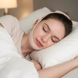 I wear this lifting band while reading at night, and my jawline already looks sharper. Soft silicone, no pinching, and my cheeks tighter.