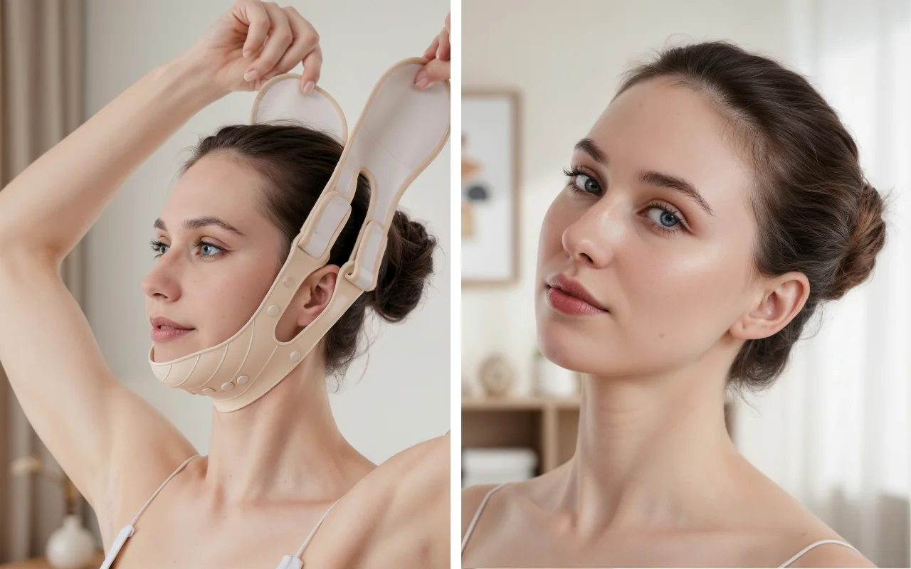 I use this silicone strap after washing my face. It stays in place, supports my jawline, and gives a nice snug feeling without leaving marks.