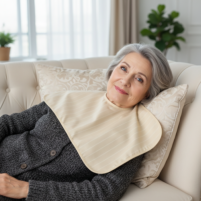 I appreciate the durability and softness of this bib—it doesn’t irritate my mother’s neck and stays strong after lots of washes.