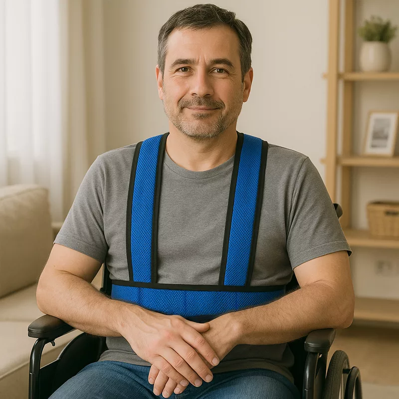 Everyone deserves peace of mind while sitting or moving. Ortorex Wheelchair Safety Belt gently supports the upper body. Lightweight mesh fabric helps the skin breathe and keeps it cool. Simple adjustments make it fit all shapes and sizes.