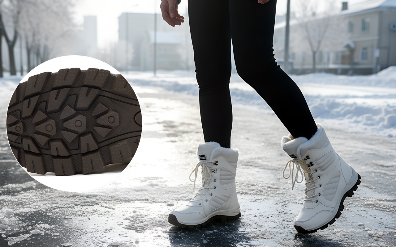 Strong grip sole helps prevent accidental falls outside. Move confidently over ice or snow, feeling secure everywhere.