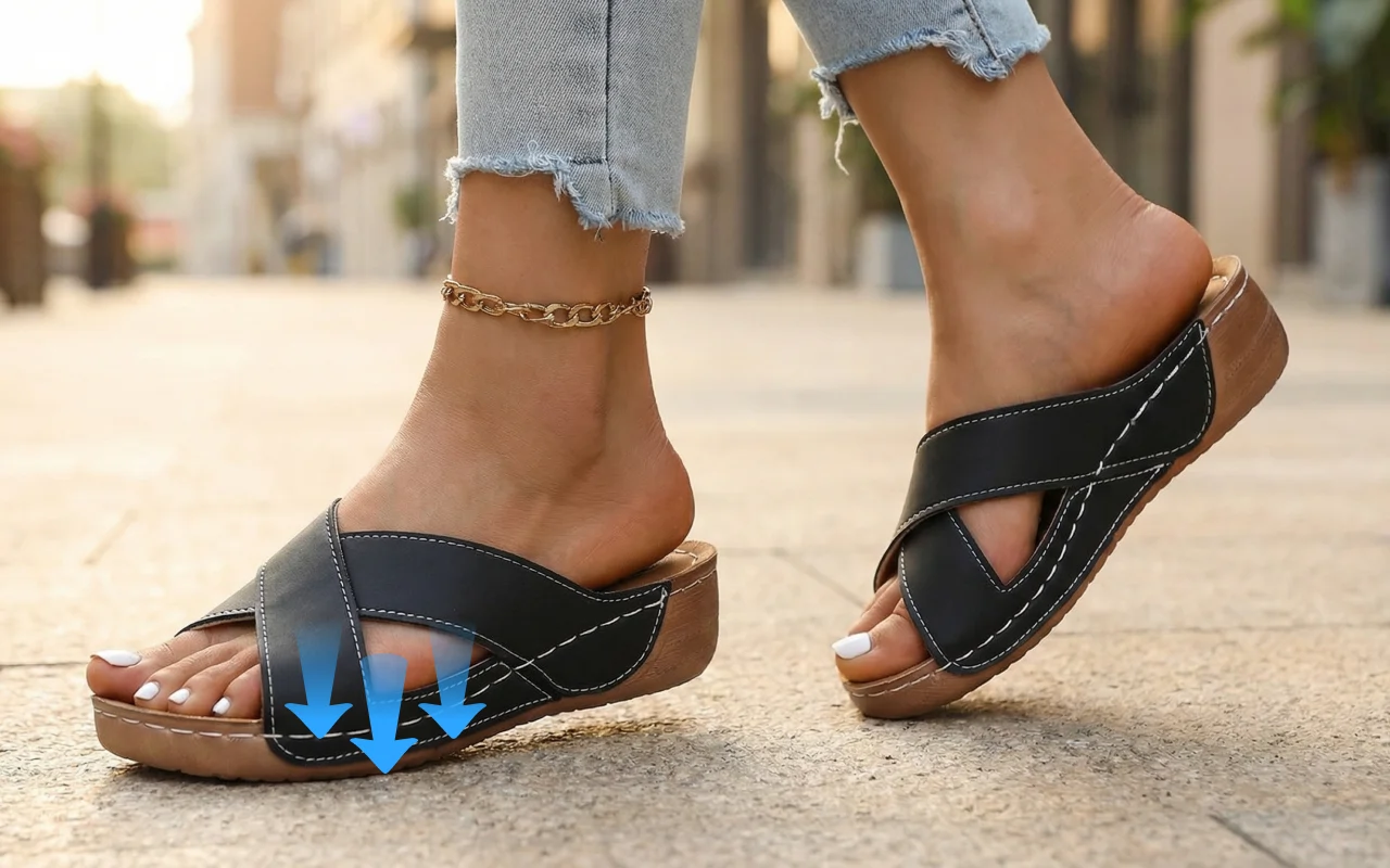 Gentle padding absorbs pressure so feet stay happy longer. Walk without pain or strain, even on busy afternoons.
