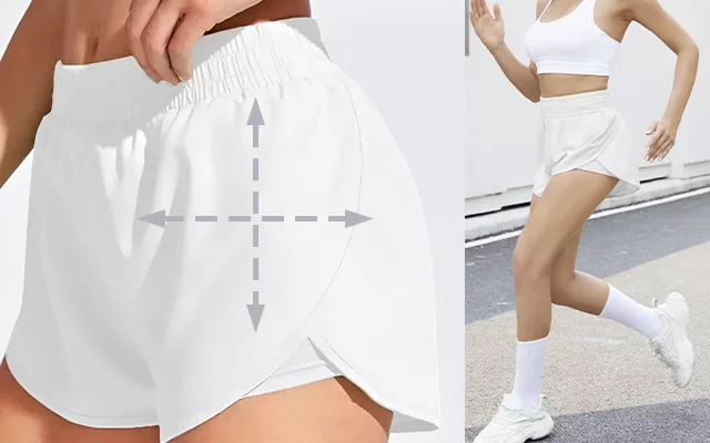 Super flexible shorts! I can squat, stretch, and jump without any problems. The waistband keeps them where they need to be too.