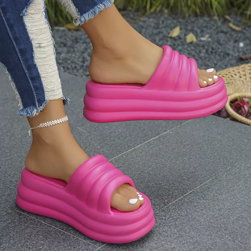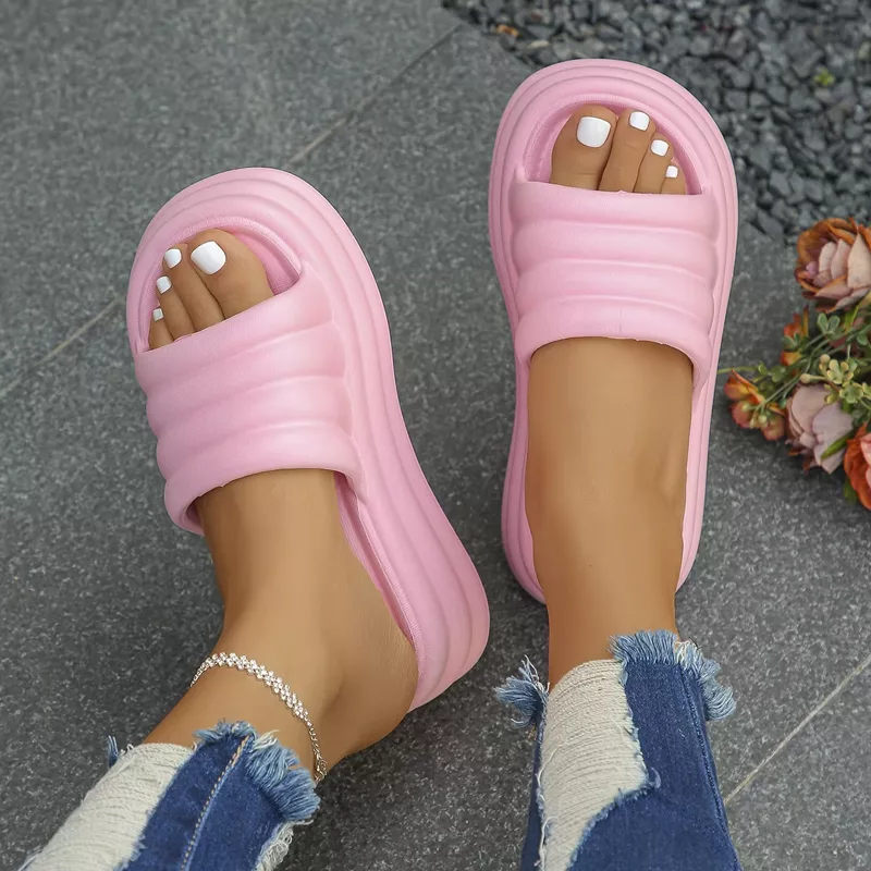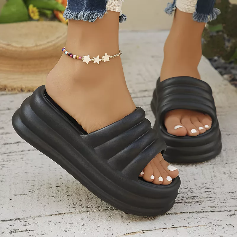 Despite a sturdy design, our platform slippers are not heavy at all. They won't weigh you down as you enjoy outdoor activities.