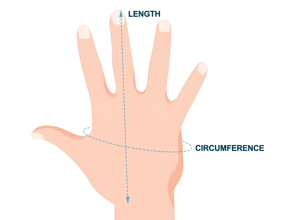 | SIZE | LENGTH | PALM CIRCUMFERENCE | ||