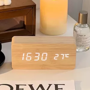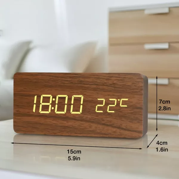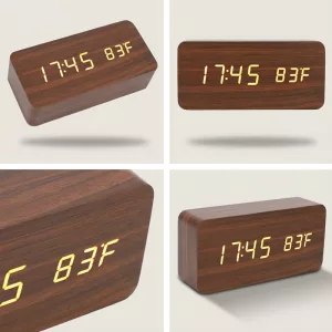 It’s so cool that this clock tells the room temperature, too. I think the wooden finish makes my nightstand look fancier. Super happy with it.