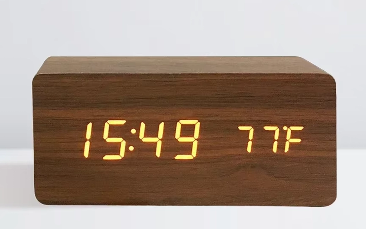 It’s so cool that this clock tells the room temperature, too. I think the wooden finish makes my nightstand look fancier. Super happy with it.