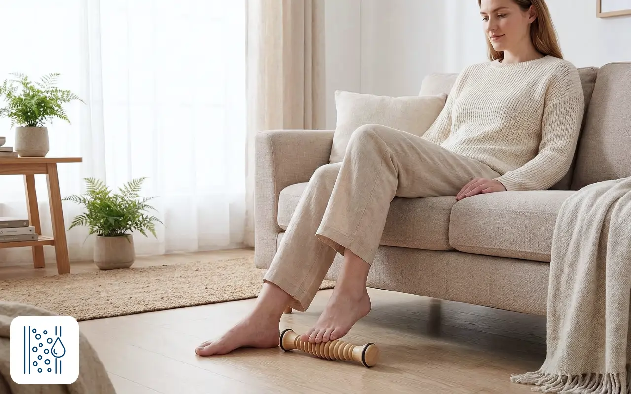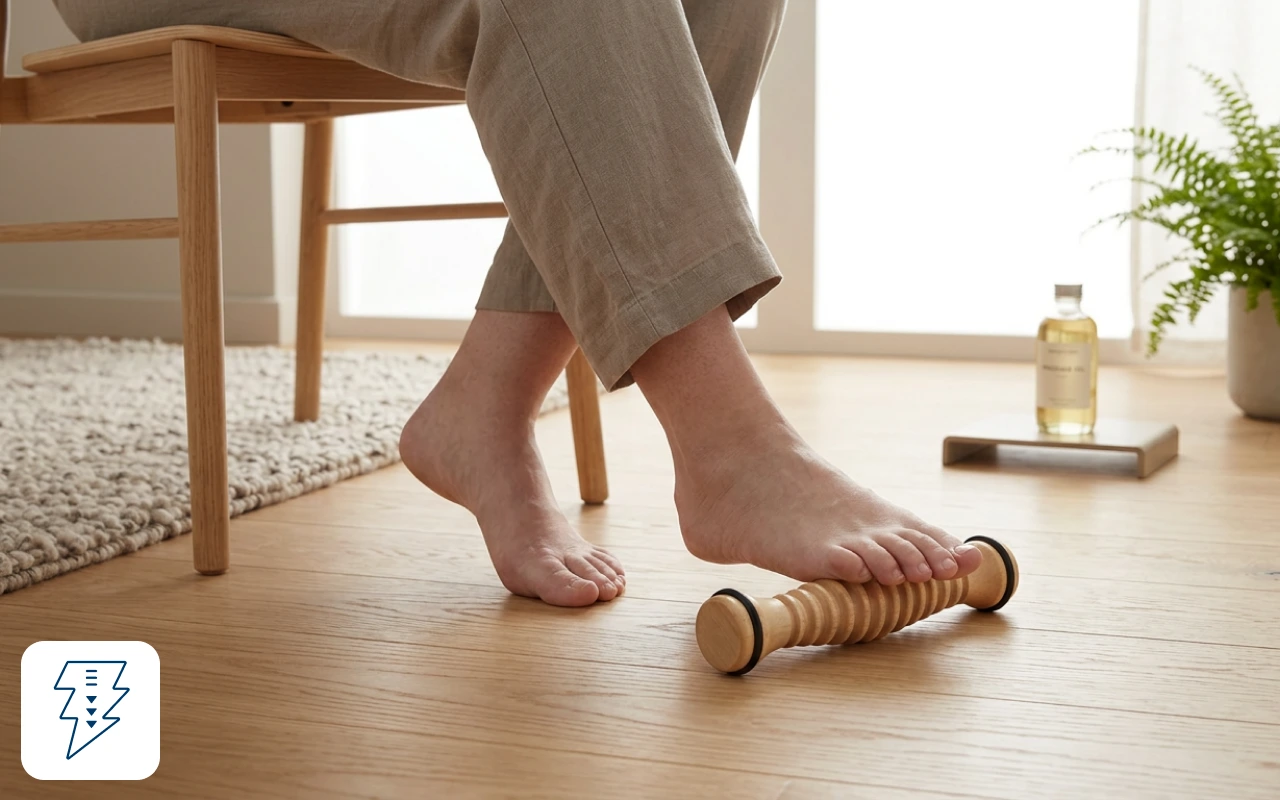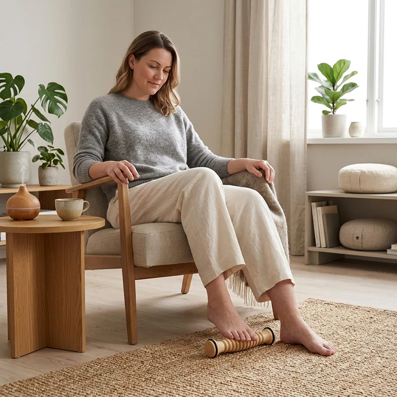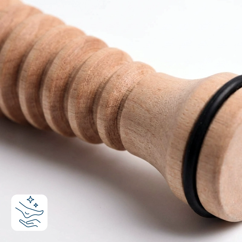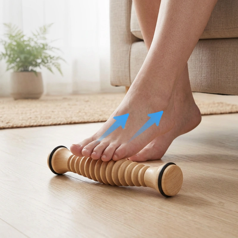The wooden massager lives under our coffee table. My wife and I take turns using it, and both notice better circulation and less swelling in our feet.